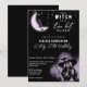 A Tini Bit Older Witch Moon Martini Birthday Party Invitation - A fun and unique Halloween birthday invitation. Featuring a glowing moon with a black cat on a black starry night. A beautiful witch wearing a witch hat and holding a martini with black, white and purple details. Edit this spooky birthday invitation template with your own event details. Perfect for a 30th birthday bash, 40th birthday celebration or 50th birthday girls night out. Available as an instant printable digital download, send via text, social media, email or print at home.