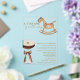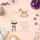 A Tini One is On The Way Espresso Martini Baby Shower Invitation Acrylic See Through Clear - A unique and adorable baby shower invitation with an espresso martini adorned with a mocha brown coquette bow and a cute vintage wooden rocking horse toy, both watercolor illustrations. Elegant, handwritten script font alongside sleek block font in brown tone. Edit this baby shower invitation template with your own event details. Perfect for spring, summer or fall baby showers. For parents or moms to be looking for something different and one of a kind.