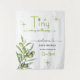 Introducing our enchanting A tiny one is on the way Baby Shower welcome sign, A chic olive theme with an olive branch on the front with editable baby shower details Features Pastels Graphics of olives , script and elegant calligraphy look stunning on this olive baby shower backdrop.