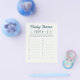 This fun baby shower game challenges guests to think of a baby item that starts with each letter of the alphabet. If their guess is the same as the mum-to-be's guess then they get a point. This game sheet has a blue and cream colour scheme with a nautical theme.