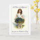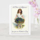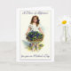 In this vintage print a pretty young girl is holding a large wicker basked filled to overflowing with Violets. She is dressed in a lovely lace dress with white high-button shoes to match. The large bow holding back her curls is the exact colour of the Violets. You can change or delete the text inside the card, if you wish.