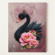 A touch of rose and swan's glow. This enchanting design depicts an elegant black swan, immediately eye-catching with its smooth, dark plumage and bright orange beak. A delicate floral arrangement perches atop its head, emphasising its regal grace. Delicate pink blossoms, presumably peonies, are artfully grouped around the swan's body, lending the image a romantic and elegant touch. The background consists of a gentle gradient in shades of pink, immersing the scene in a dreamy, almost magical atmosphere. The interplay of the jet-black feathers, the vibrant flowers, and the soft gradient creates a harmonious overall image full of grace and love.