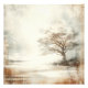 A solitary tree stands enveloped in a misty, ethereal landscape, evoking a sense of tranquillity and timelessness. Subtle earthy tones and delicate patterns blend seamlessly with the soft, foggy background, creating a dreamlike atmosphere.