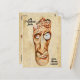 Funny, vintage illustration of a tired and troubled sole, actually a face in the shape of a foot bottom, with the toes being miniature faces with corns.  A comical looking troubled "soul" indeed.