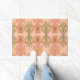 A home decor floor mat with a tulip floral print in coral, pink and greens with black. The pink background can be changed to any colour to match your decor.