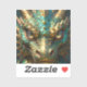 A sticker with an illustration of a gold and turquoise metallic looking dragon.