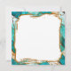 A notecard with an illustration of a gold and turquoise metallic looking dragon. Cool gold accents on the back.