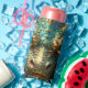 A Turquoise and Gold Dragon Mystical Seltzer Can Cooler