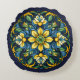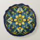 💚💙💛 This round pillow is a true work of art, designed to bring comfort and beauty to your living space. Its surface boasts a deep, rich navy blue, akin to a star-studded night sky. Against this backdrop, a beautifully crafted floral pattern comes to life. Delicate, golden-yellow petals unfurl gracefully, their edges gently curling. These flowers are adorned with azure-blue centres, a hue that mirrors the vast expanse of the open sky.