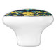 The ceramic knob is a captivating work of artistry. Its dark blue background serves as a striking canvas, providing a dramatic contrast to the vivid yellow and green floral symmetrical motif. The deep, rich hue of the blue evokes a sense of mystery and depth, creating a visually compelling foundation for the intricate design.