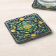 💛💚💙The hard plastic coaster is a captivating work of modern artistry. Its deep blue background serves as a striking backdrop, providing a bold contrast to the vibrant yellow and green floral symmetrical motif. The dark, rich hue of the coaster's surface creates a visually compelling foundation for the intricate design.