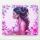 A beautiful woman surrounded by pink flowers, with dark wavy hair flowing down her back, on a thick, personalized laptop mouse pad. Give one to your mate or if you're getting married, get some for your wedding, with your photo on them for your wedding party.
