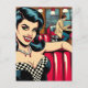 A cute vampire woman sits in a red booth at the retro diner as a man unaware enjoys his meal in the background fantasy AI generated art