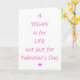 Valentine's Day card for Vegans. Message reads 'A Vegan is for Life not just for Valentine's Day' in pink with a small pink heart. Inside the card says 'Happy Valentine's Day'. Easily personalize this card using the template text. See my vegan merchandize in my Vegan collection in my store.