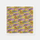 The design you provided features a pattern consisting of horizontal stripes in various colours, including yellow, green, purple, and pink. Between these coloured stripes are thinner white stripes. Each coloured stripe is adorned with a sequence of small dots that are evenly spaced along the length of the stripe. The dots appear in contrasting colours to the stripe they are on, such as white dots on the purple and green stripes and black dots on the yellow and pink stripes. This repetitive pattern creates a visually stimulating texture that could be used for backgrounds, textiles, or other design elements due to its vibrant colours and rhythmic dot sequences.