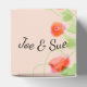 The sweetest little wedding guest box in pastel colours Text for thank you, bride and grooms names and date can be personalised to your own special events message. Text is also removable. Prettiest little design in pink coral rose flowered print. The light background colour can be personalised to any colour, however looks prettiest in the lighter colour as shown or white.