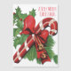 Vintage magnetic Christmas Greeting Card: mistle toe, jingle bells, and candy cane