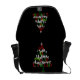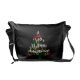Merry Christmas Tree filled with holiday greetings in green and red and covered in snow.