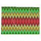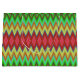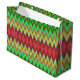 A vibrant gift bag featuring a bold, colourful zigzag pattern in shades of green, red, and yellow. It has white handles and conveys a festive, lively tone.