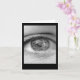 Black & white photographic image of an eye reflecting scenes from a city street.