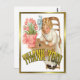 A little girl writes a letter using a dip pen. An arrangement of tulips stands on the table nearby. The text says THANK YOU!, and this carming vintage sticker, could be just the what you need to express your thanks in a special way!