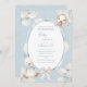 Sweet little ducks with the theme “A waddle baby is on the way”. White hydrangeas and a blue and white shabby chic polkadot background, Two adorable ducks done in watercolos. We’ve used lovely fonts and scripts done in coordinating colors baby shower invite. Hydrangeas.