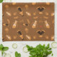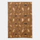 Alt text: "A warm brown blanket with a repeated pattern of various men's accessories, such as ties, hats, and glasses. Stylish and vintage-themed."