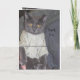 Funny thank you greeting card, a kitty cat in a knitted sweater with pearl buttons. Personalise the thank you text to any occasion.
