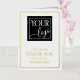 Folded thank you card for your business personalised with your logo, with text in gold foil. Business folded thank you card with gold foil details and your colour logo.