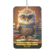 Deep within a cosy study, an adorable owl-shaped air freshener stands proudly among a pile of books and a flickering desk lamp. Its oversized glasses and fluffy feathers add a touch of charm to the inviting atmosphere, suggesting an enchanting blend of knowledge and fresh scents that fills the air.