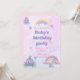 A Whimsical, pink and purple fairytale unicorn, castle and beautiful carriage invitation!