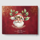 A whimsical steampunk Santa Claus against a deep red background adorned with holly leaves and berries. Santa wears a red hat with white trim and a pair of steampunk-style goggles with golden accents. His white beard and rosy cheeks add to his jolly appearance. The words "MERRY CHRISTMAS" are written in a decorative font at the bottom of the image.