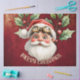A whimsical steampunk Santa Claus against a deep red background adorned with holly leaves and berries. Santa wears a red hat with white trim and a pair of steampunk-style goggles with golden accents. His white beard and rosy cheeks add to his jolly appearance. The words "MERRY CHRISTMAS" are written in a decorative font at the bottom of the image.