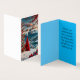 If you love snowmen, this is a great Christmas card. This is a very cute and colorful design that has translated well on to the card. A few things to note are they are very small cards (I need to get better at checking dimensions), is shipped flat with a fold and there are no envelopes included. The printing is well done and there are no issues
