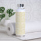 a white and gold wallpaper with a pattern on it water bottle
