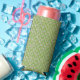 a white background with brown dots on it seltzer can cooler