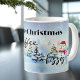 Cute mug featuring a winter scene with a snowman and your custom (funny or other) texts. Dreaming of a white Christmas and kissing Santa ...