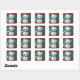 A cute white cat with a Santa hat sitting with a poinsettia flowers and snowflakes in red and teal. Pretty holiday stickers to seal your Christmas cards with!