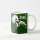 A White Poodle Resting in Lush Green Grass Coffee Mug