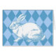 A vintage illustration of a rabbit recolored in a blue on white colour scheme.