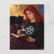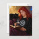 A red haired witch with her black cat enjoy a book and tea AI generated art