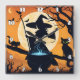 A witch brewing potions under a full moon square wall clock