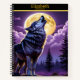 Beneath a glowing full moon, a majestic wolf stands poised on a sketchbook, its magnificent fur illuminated by the moonlight. Surrounding pines create an enchanting atmosphere as the creature howls, connecting with the wilds of the night.