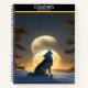 Beneath a sprawling, starry sky, a majestic wolf raises its head, howling rhythmically towards the glowing moon. Framed by towering trees and a blanket of snow, this moment captures the essence of wilderness and nature's beauty at twilight.