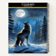 In a serene winter landscape, a majestic wolf howls at the luminous moon, surrounded by towering pine trees. The night sky is filled with twinkling stars, creating a magical atmosphere that captures the essence of nature's beauty and tranquillity.