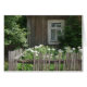 A wooden hut card