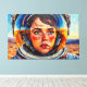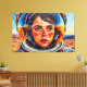 This digital artwork by Otis Porritt presents a striking close-up of a woman encased in a vibrant yellow astronaut helmet. Her face, rendered with expressive, painterly strokes in warm skin tones and deep blues for her eyes, gazes upwards with a sense of wonder. The helmet's visor reflects a vivid blue sky, mirroring the expansive, brushstroke-textured sky above a desolate, sandy landscape. The impasto-like technique, characteristic of digital art mimicking traditional painting, gives the piece a dynamic and tactile quality, emphasising the contrast between the detailed figure and the vast, unknown environment.