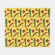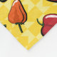 A peri-peri, friggitello, habanero, rocoto, jwala, and shishito chilli pepper are decorated with patterns from the region where they were originally cultivated or are commonly eaten and sit on a yellow background with patterns inspired by tattoos worn by native peoples in the Amazon to create a fun repeating pattern that reflects the origins and spread of these tasty, and often spicy fruits.