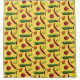 A peri-peri, friggitello, habanero, rocoto, jwala, and shishito chilli pepper are decorated with patterns from the region where they were originally cultivated or are commonly eaten and sit on a yellow background with patterns inspired by tattoos worn by native peoples in the Amazon to create a fun repeating pattern that reflects the origins and spread of these tasty, and often spicy fruits.