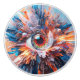 A vibrant and surreal depiction focuses on a highly detailed eye surrounded by an explosion of abstract and colourful elements. The composition features a blend of feathers, organic shapes, and bursts of colour radiating outward, creating a dynamic and captivating scene. Digital Art Photoshop CS5
